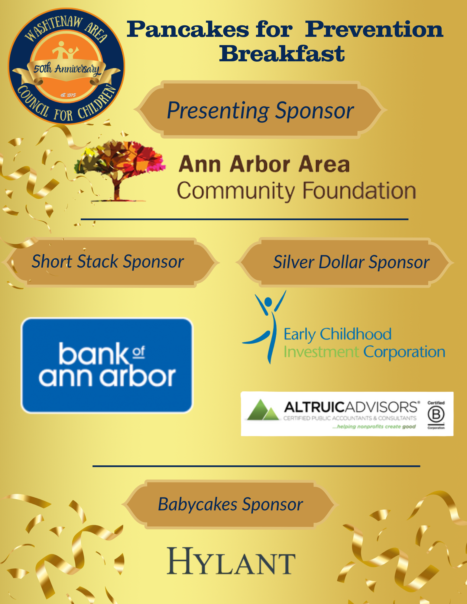 WACC’s Pancakes for Prevention, presented by ANN ARBOR COMMUNITY FOUNDATION, is a FREE event that features breakfast and networking, as well as a speaker and community testimonials about the greatest risk factors to children and the importance of vigilant prevention efforts to keep kids safe in our community. The event is held in April each year, which is Child Abuse Prevention Month. This year’s event will be held on Thursday, April 24, at the Ann Arbor City Club. Over 100 guests are expected to attend.